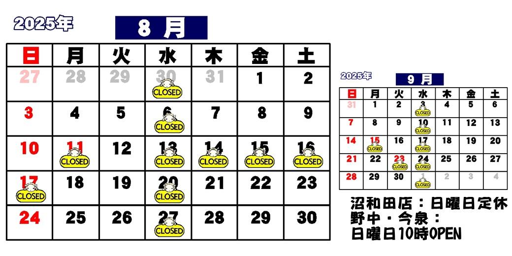 | 営業時間 | 平日:8:00~19:00 日曜日:10:00~19:00 (水・祝日定休) |